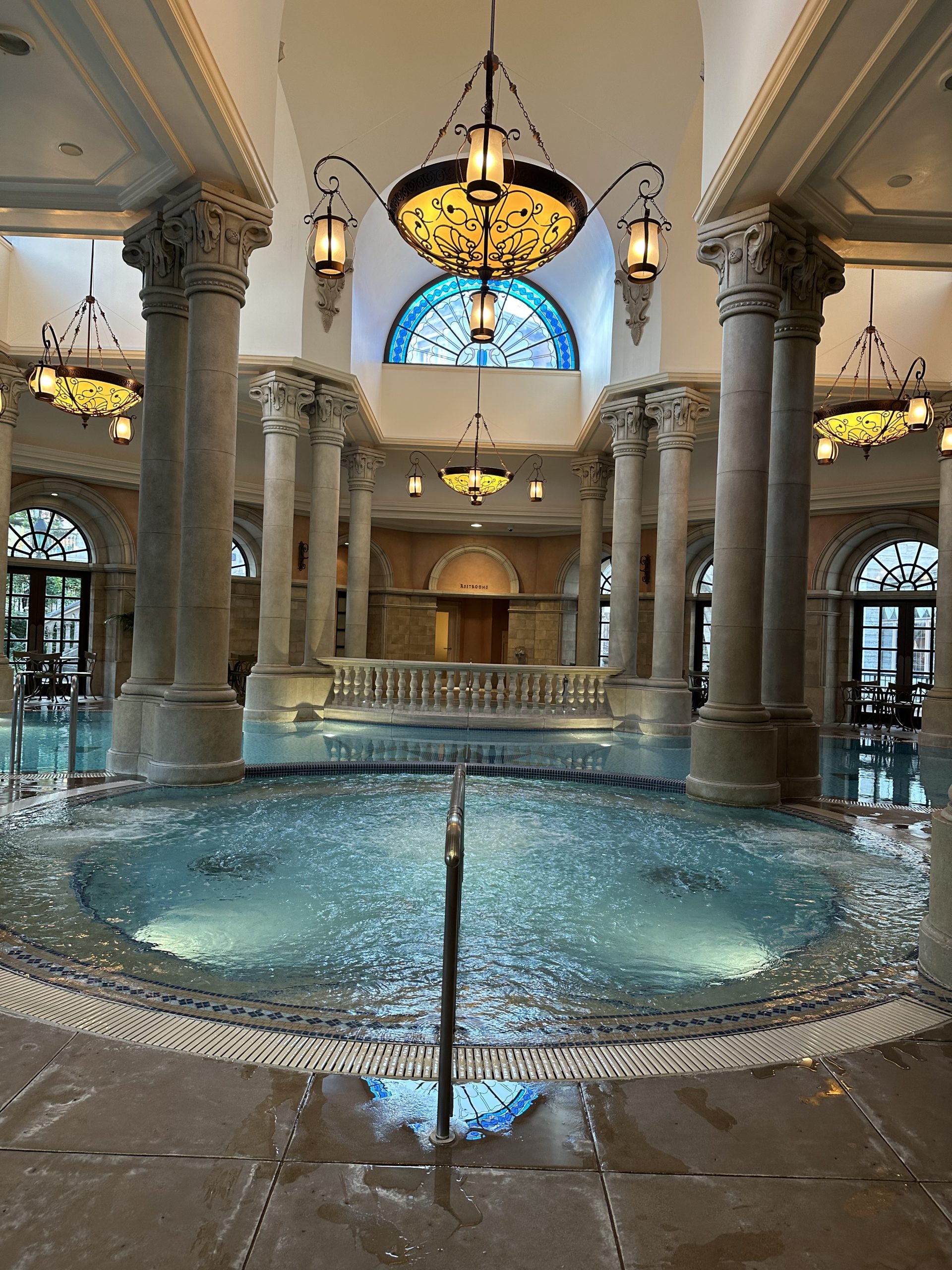ミラコスタ宿泊者は室内プール「テルメ・ヴェネツィア」に入れるということなので、ルームサービスの前に行きたいねと話していました🌷