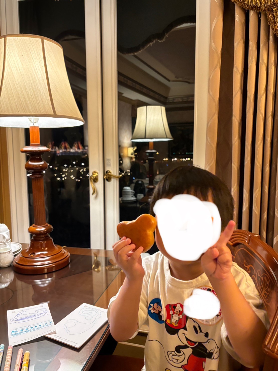 (息子はセットメニューについて来たミッキーパンに嬉しそう♡︎